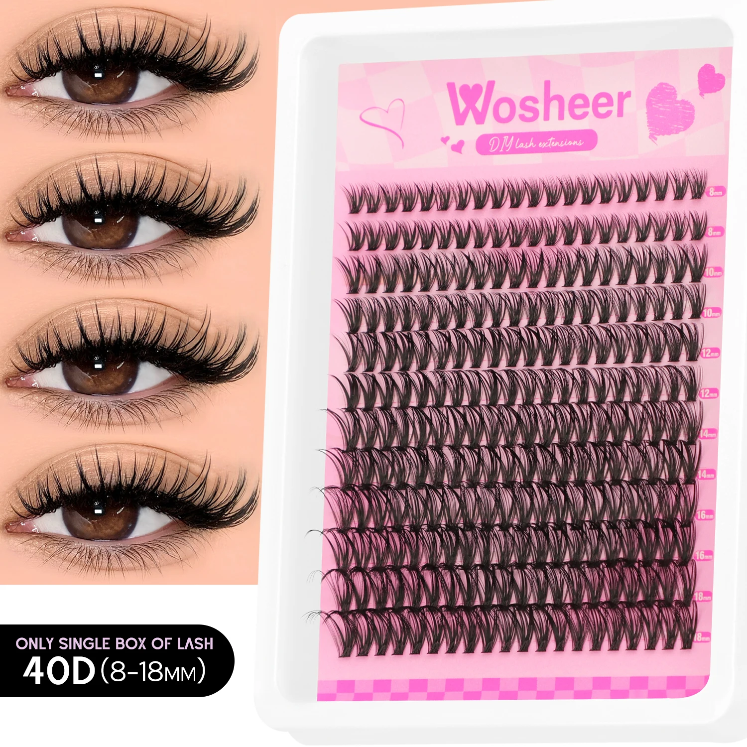 【Inclusive DIY Lash Extension Kit】 WOSHEER lash cluster lash kit provides everything you need for your diy lashes. You will get cluster lashes, lash bond and seal, Bring salon-quality eyelash extensions to your home in just 3-5 minutes with the WOSHEER lash cluster kit.