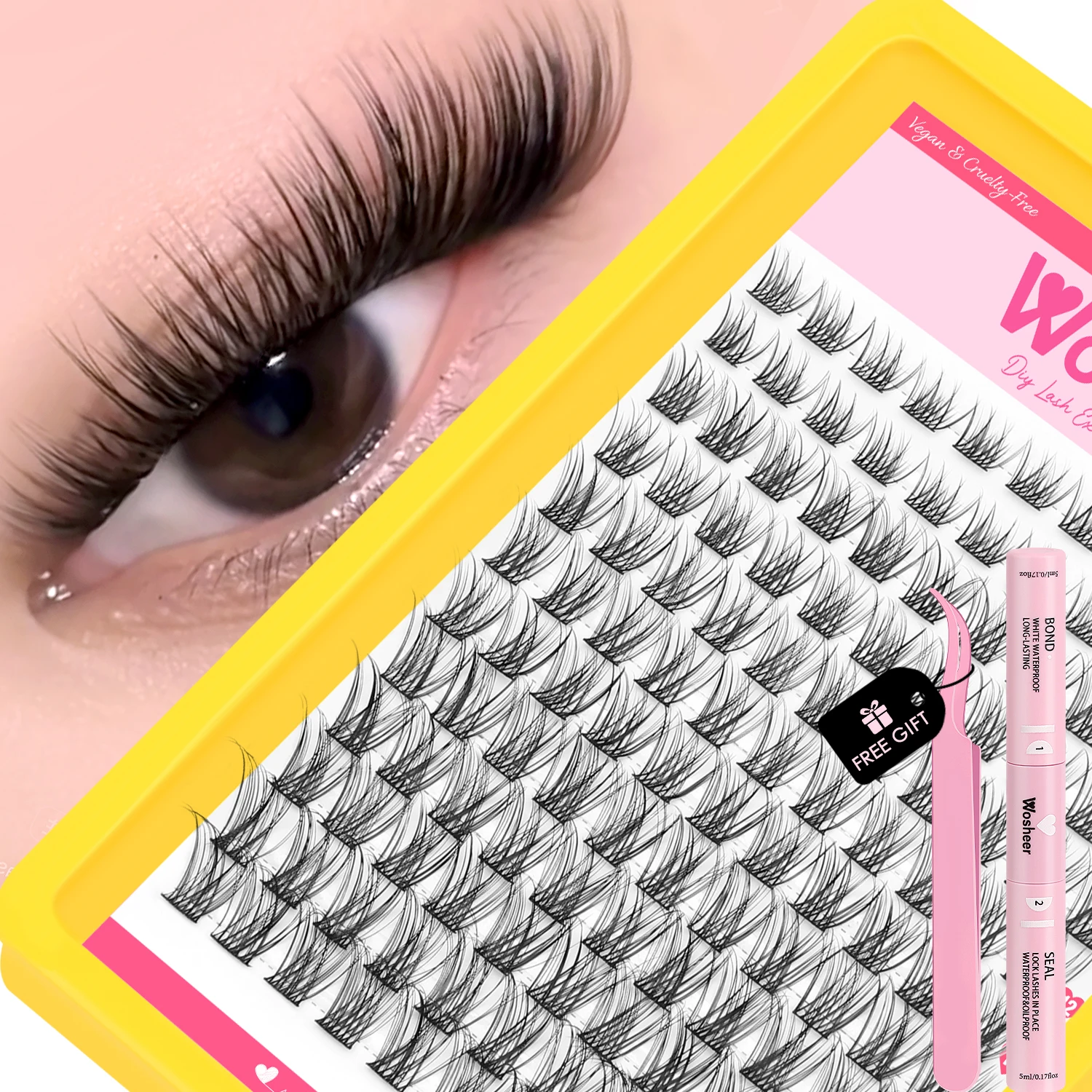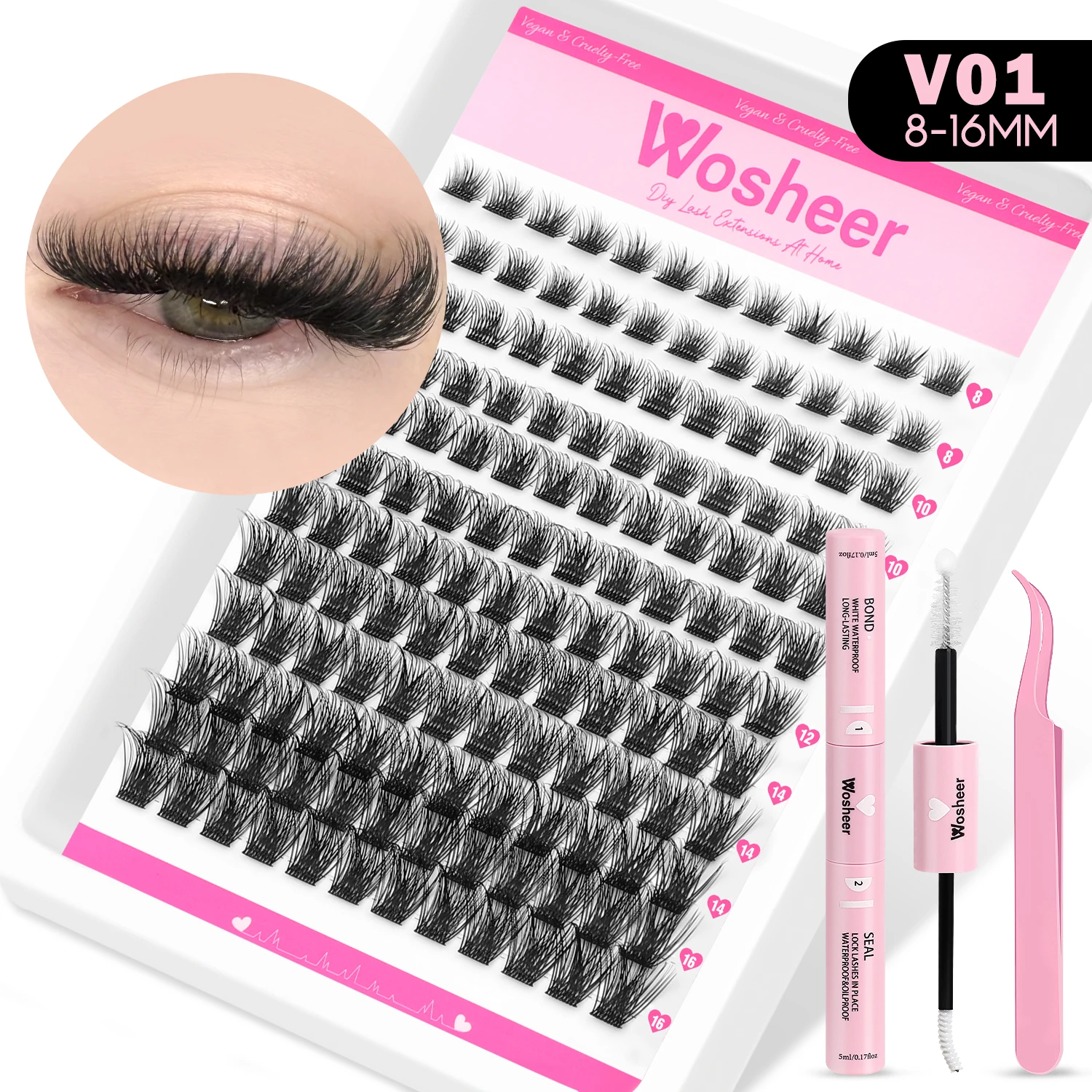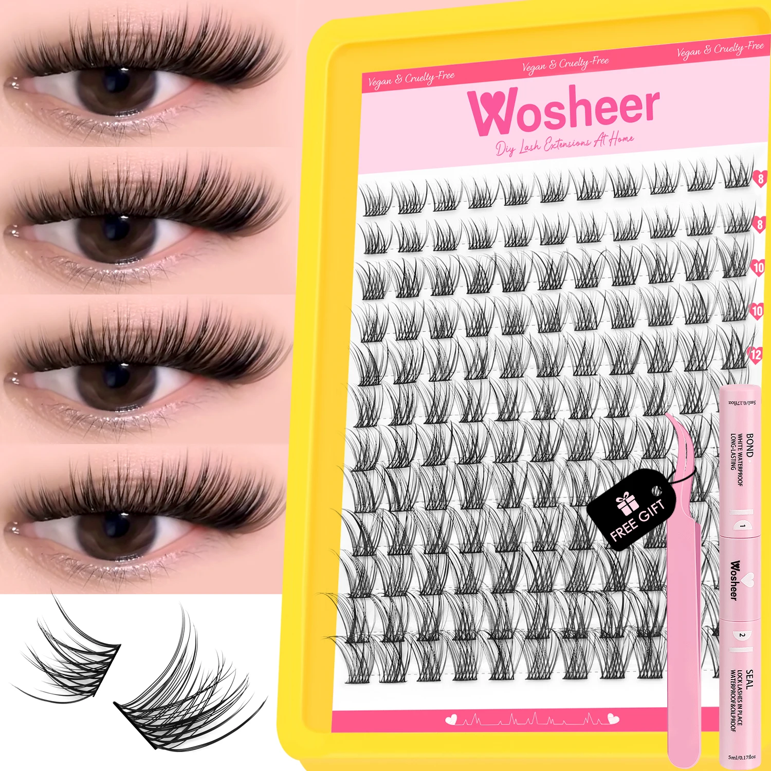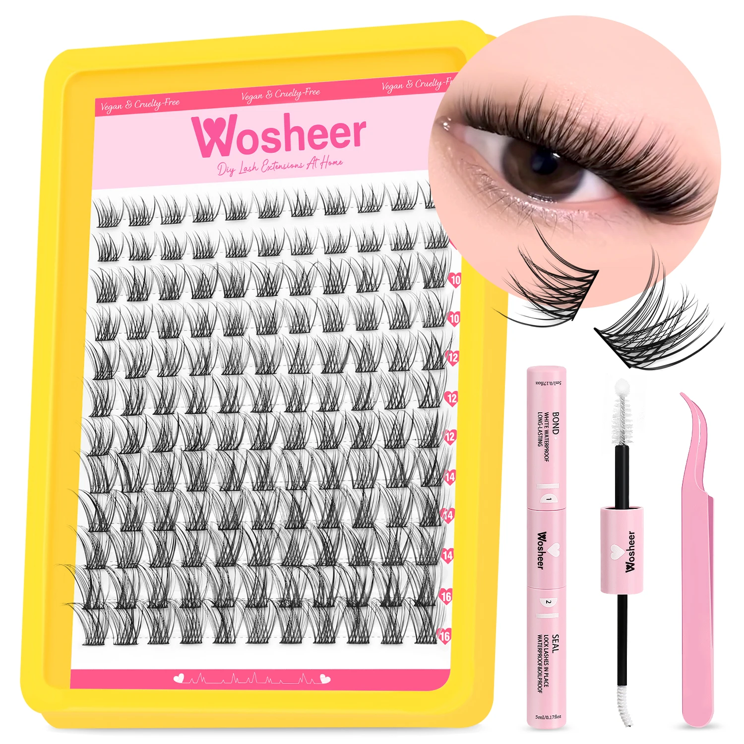【Inclusive DIY Lash Extension Kit】 WOSHEER lash cluster lash kit provides everything you need for your diy lashes. You will get cluster lashes, lash bond and seal, Bring salon-quality eyelash extensions to your home in just 3-5 minutes with the WOSHEER lash cluster kit.