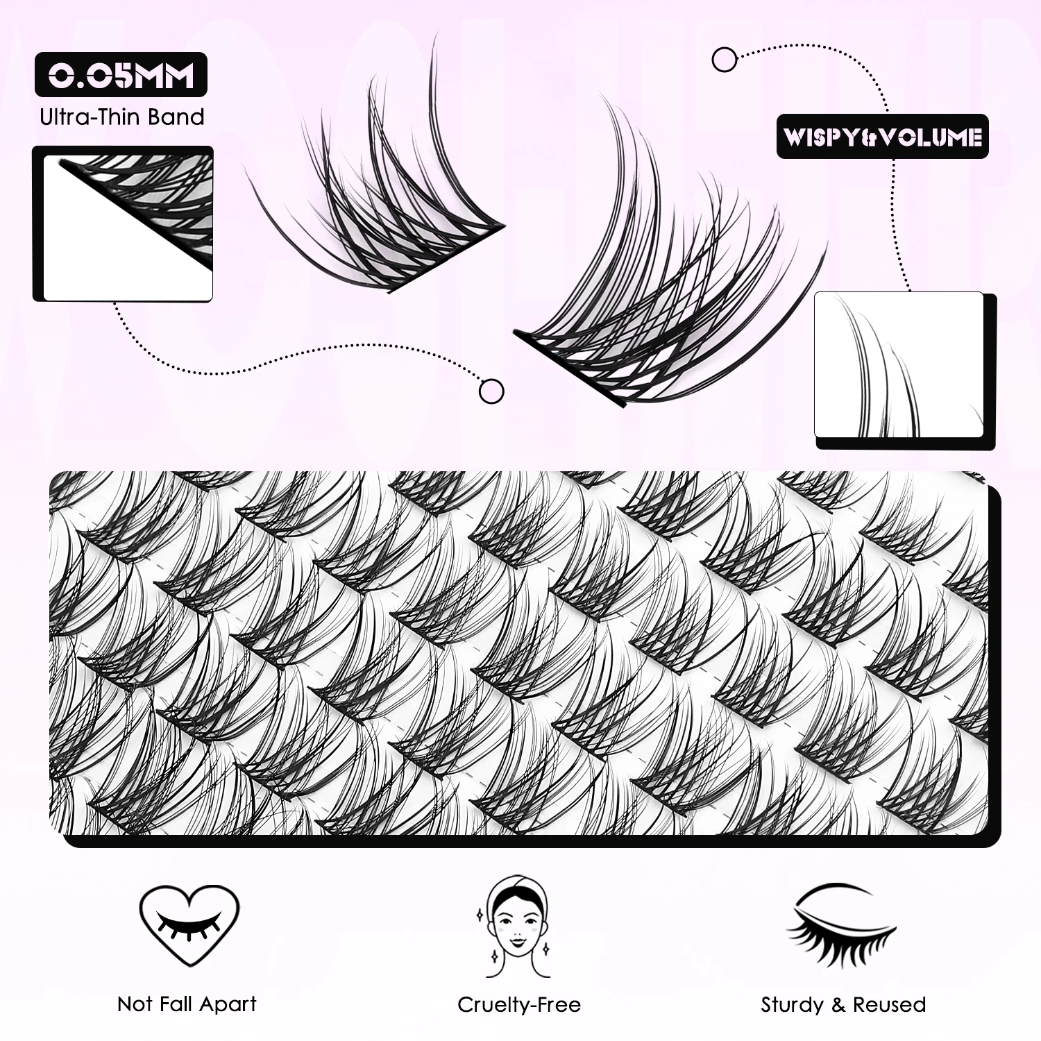 【High-Quality Lash Cluster】WOSHEERcluster eyelashes are hand-made of the highest quality fiber, vegan, cruelty-free, and virtually weightless. Ultra-light, tapered end, comfortable to wear.