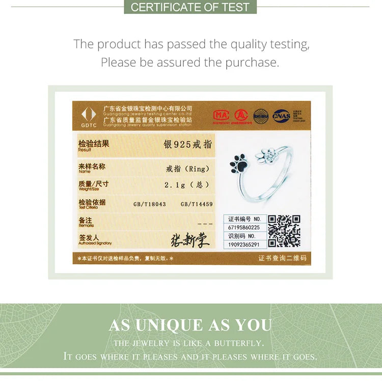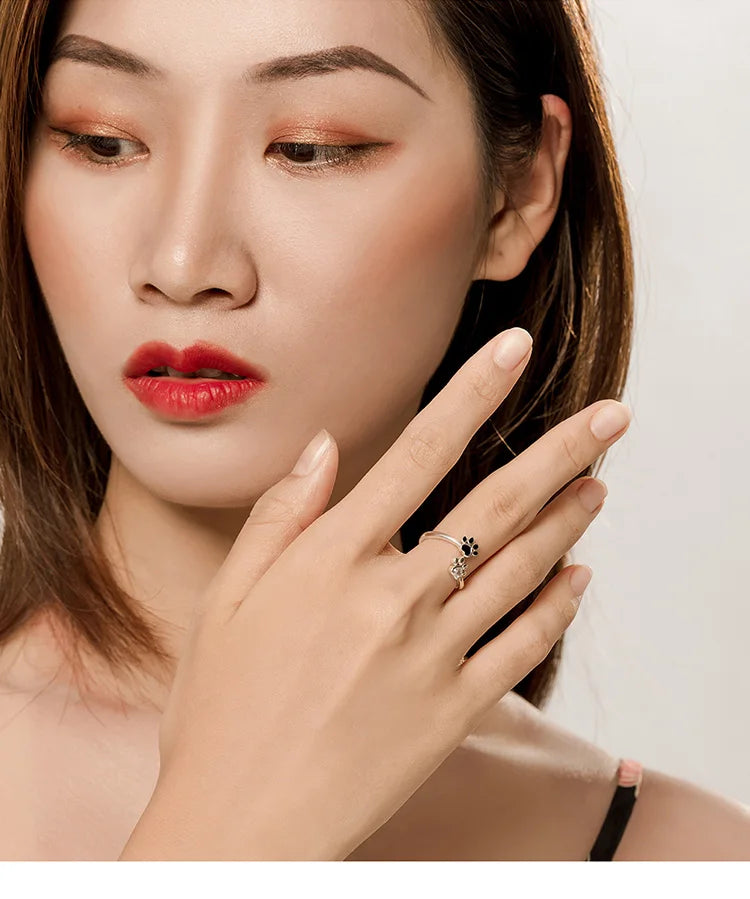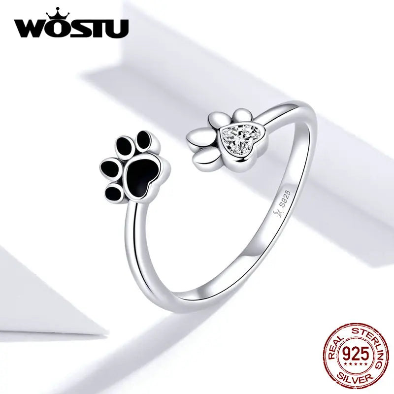 WOSTU 100% 925 Sterling Silver Paw Dog Pets' Footprint Ring For Women Wedding Engagement Adjustable Rings Fashion Jewelry CQR605