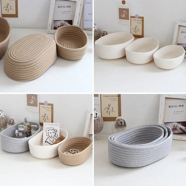 Woven Nordic Cotton Rope Storage, Decorative Storage Basket Bin Organizer Box, Baskets Organizer Desktop - Set of 3