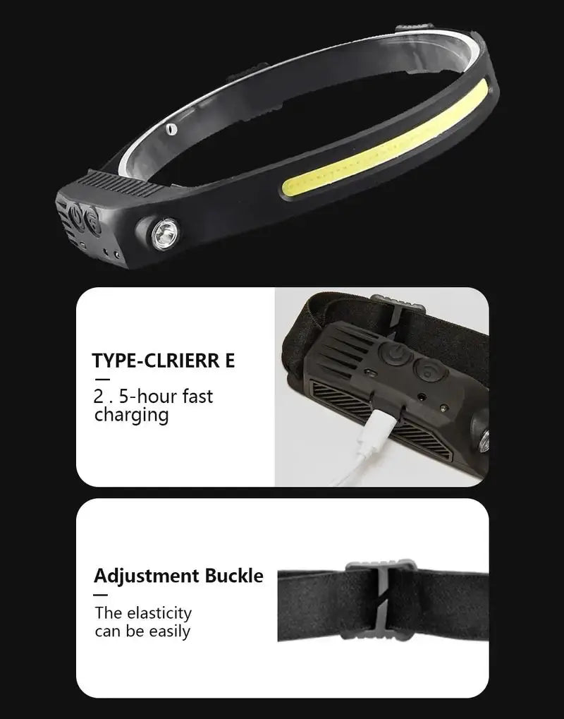 XPE+COB LED Induction Headlamp USB Rechargeable Motion Sensor Flashlight 5 Modes For Outdoor Camping Torch Cycling Head Light