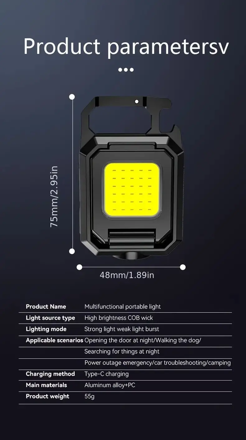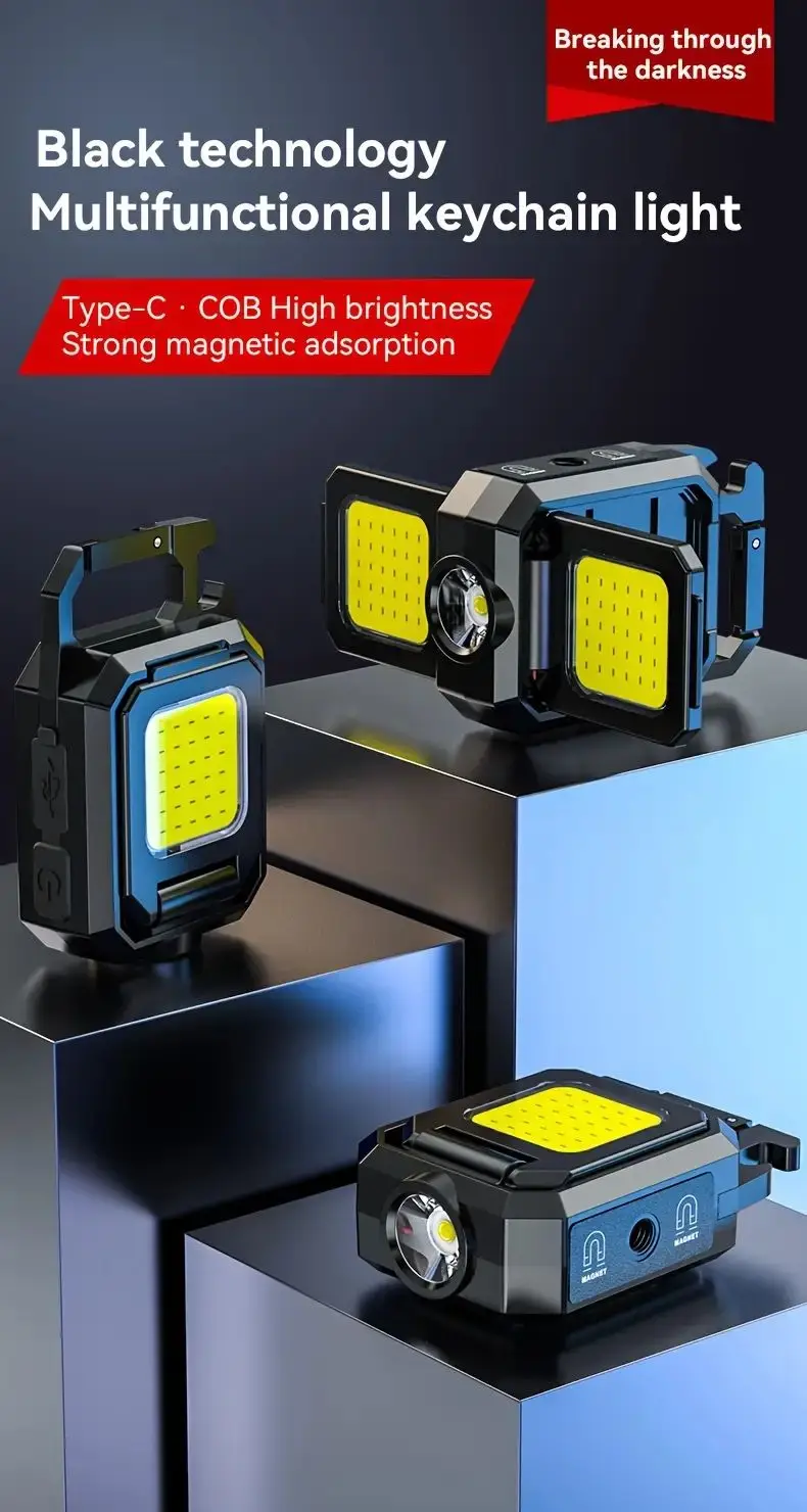 1. Adjustable Light Panel:  The light panel of this keychain light can be rotated up to 90 degrees, allowing you to adjust the direction of the light as needed. Enjoy flexible lighting options for various tasks.