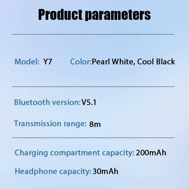 Y7 TWS Wireless Headphones Noise Reduction Earphone Bluetooth-compatible 5.1 Waterproof Headset with Mic for Xiaomi iPhone Earbud