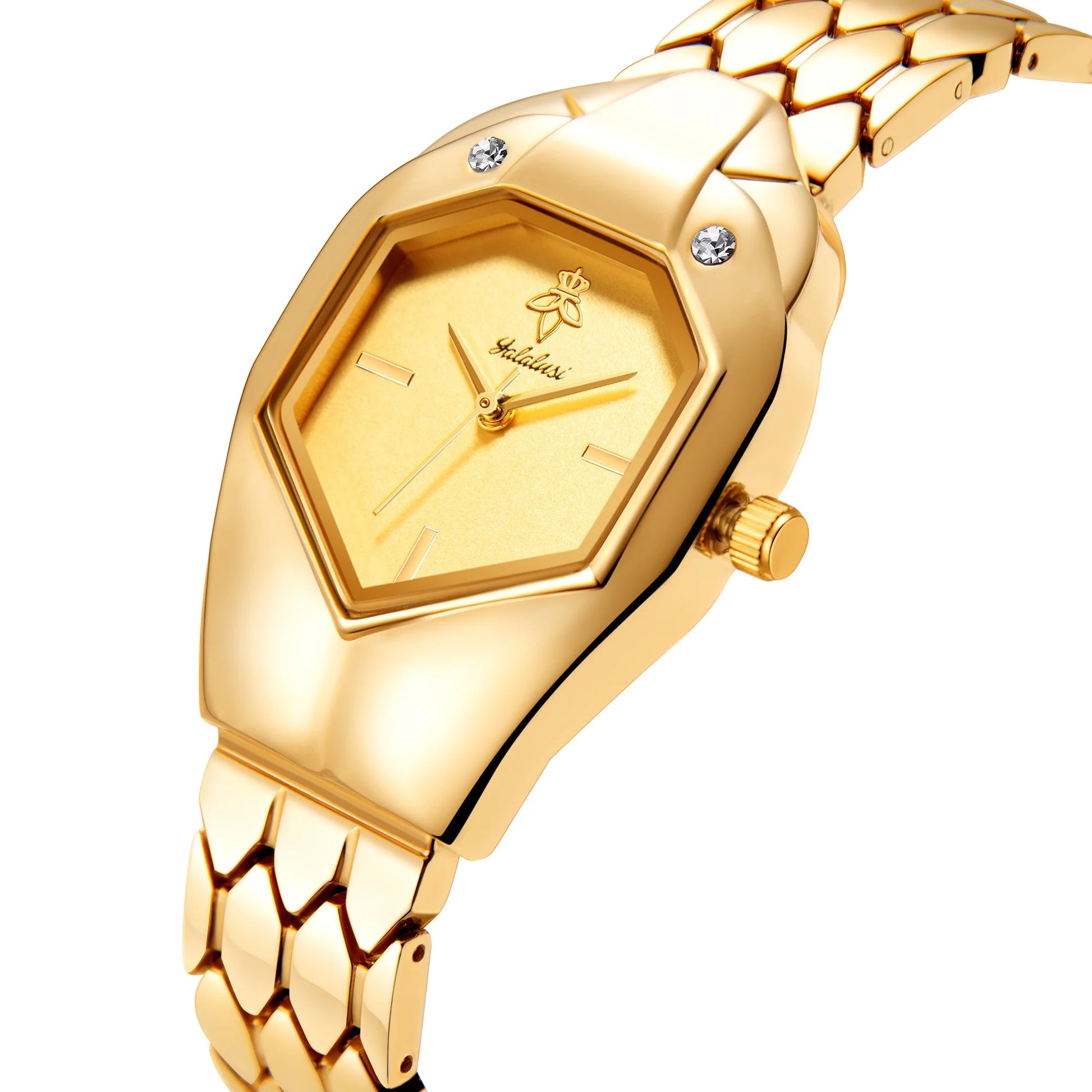 YaLaLuSi 1pc Women's Quartz Watch, Rhinestone, IP Gold Plated, Life Waterproof, Comes with Gift Box and Watch Remover