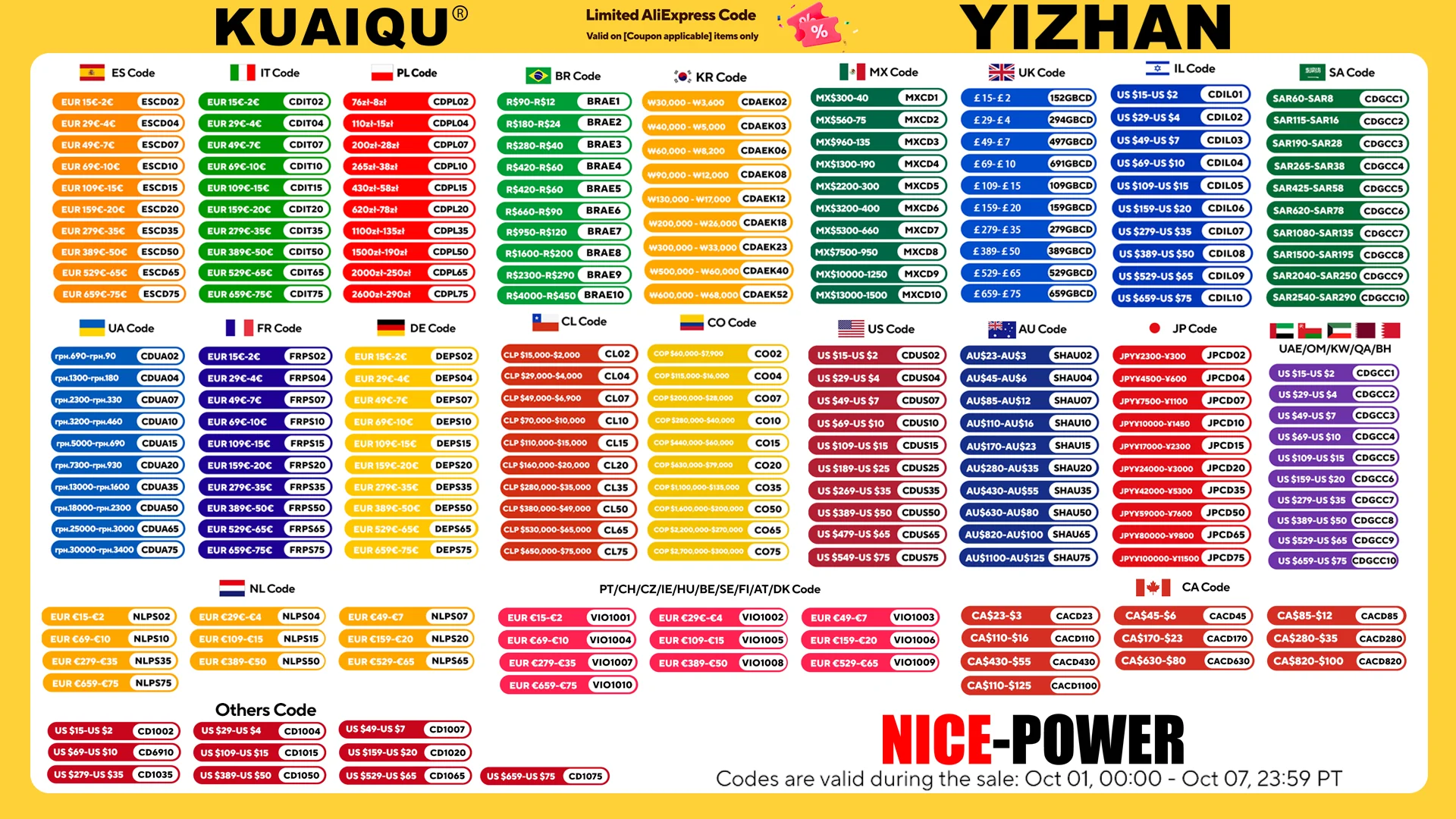 Codes are valid during the sale: Oct 01,08:00-Oct 07, 23:59 PT